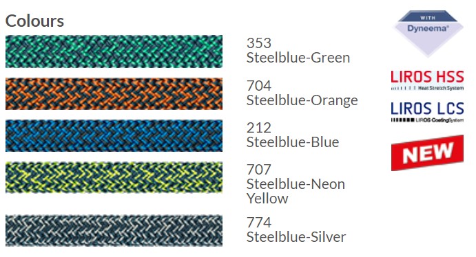 Simple stripping and easy to splice. Excellent retention forces on winches and rope stoppers. Perfect design with special abrasion resistant LIROS steelblue Polyester.