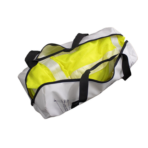 The MOB Rescue Hoist is a recovery system that allows a man overboard to easily climb up and get back onboard. If the man overboard is incapacitated then the system can be used as a sling hoist using an attachment to a halyard. The MOB Rescue Hoist can be positioned prior to setting sail so it will be ready for deployment with little effort. Designed with neon yellow water resistant polyester with reflective tape strips, the MOB Rescue Hoist can be seen easily during the day or night.