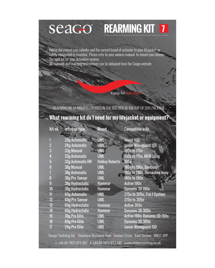 Seago Re-Arming Kits are the genuine spares for Seago Lifejackets and ensure maximum security.